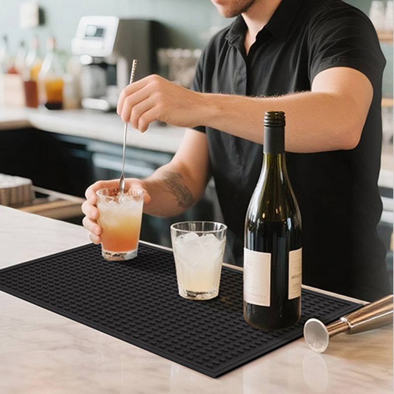 Non-slip surface protects glassware and reduces noise